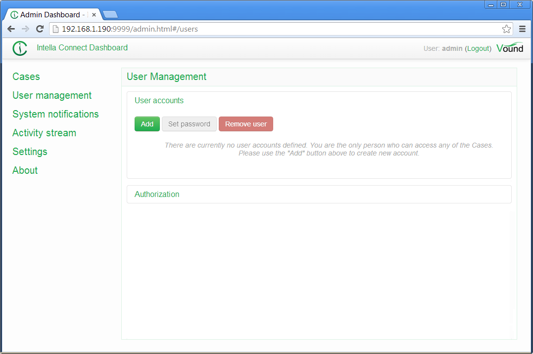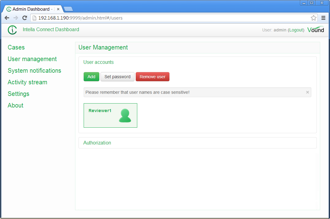 To create new users, modify and delete existing users, click on User management in the left side menu in the Intella Connect Dashboard.
