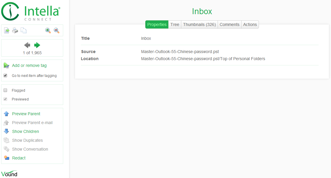 The content of this tab depends on the item type. For example, in case of PST emails the low-level information obtained from the PST is listed here. This typically includes the SMTP headers (shown in the Headers tab) and the email body, but also a lot more PST-specific properties.