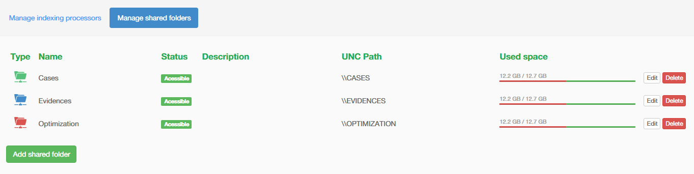 Important: Assuming that Processor is installed on different computer than the one running Connect, it is possible to have Case and Optimization folders reside on computer which is running Connect. You will need to use network path instead of local path to be able to index evidence which does not reside on local disk with Processor. To be precise, you will need to use network path when creating case (Case folder field and Optimization folder field are the ones, which will need network path).