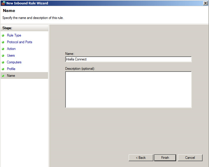 Intella Connect uses port 9999 (you can also assign a different port of your choosing as described in changing a default port). This port must be open on the local firewall in order for Intella to work correctly. To configure the local firewall for Server 2008 R2, go to Start – Administrator Tools – Windows Firewall with Advanced Security.