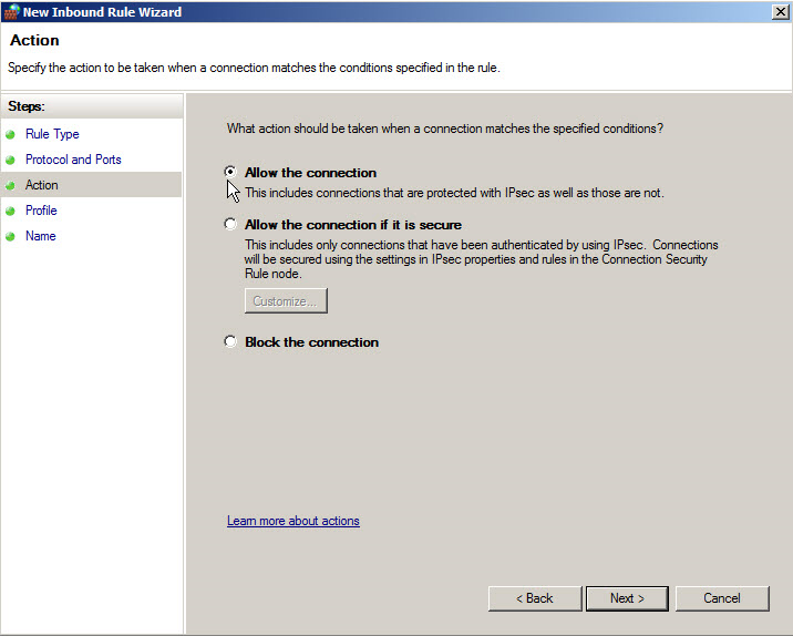 Select TCP as the Protocol and 9999 as the Port or the port you have chosen as described in changing a default port.