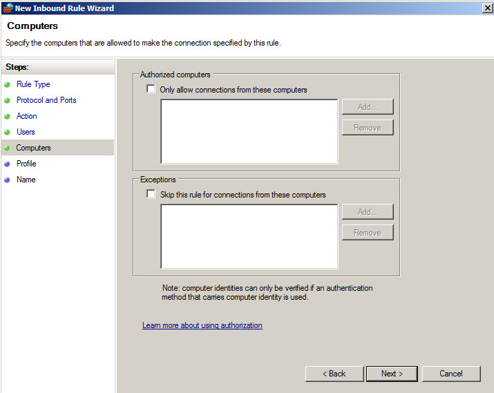 - For the client, the host in which you will review the case, you must configure the firewall for inbound connections.