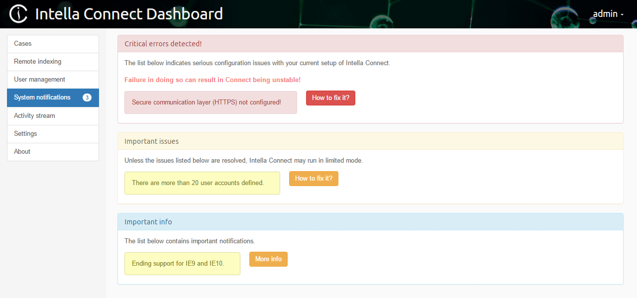 The Connect Admin - The person who will manage Intella Connect. They should have a detailed understanding of case management, e.g. be able to manage the administration of adding new cases and assigning reviewers to Intella Connect.