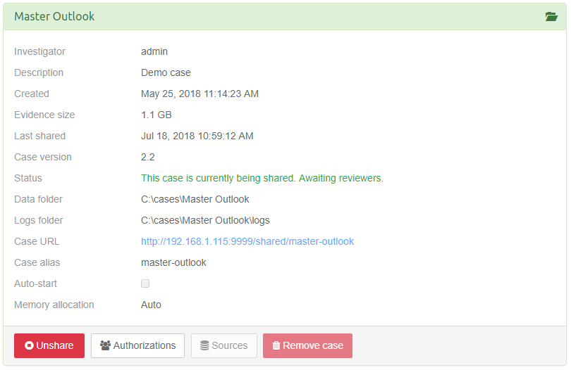 Case can optionally be shared with the Auto-start option enabled. The purpose of this function is to specify which cases